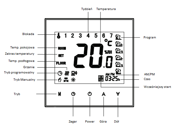 - Pamięć danych, gdy termostat jest wyłączony.(opcja)